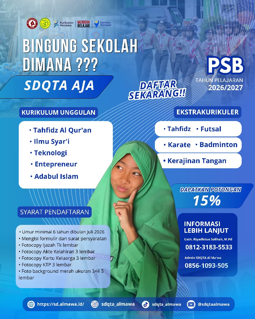 Dengan rasa yukur yang dalam kepada Allah Ta’ala, kami dengan senang hati mengucapkan ahlan wa sahlan di Al Ma’wa Islamic School, sekolah para juara dan hafizh al Qur’an. Sekolah yang mendidik murid menjadi generasi hafizh al Qur’an dan berakhlaqul karimah dalam kehidupan